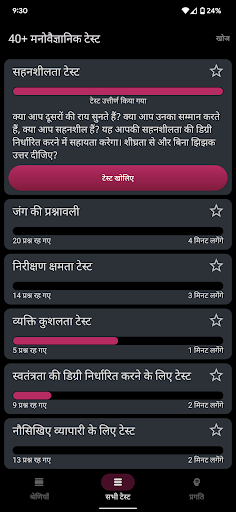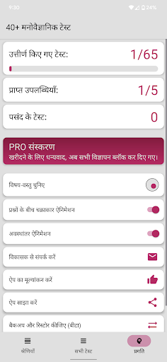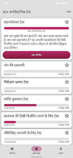 · 40 से अधिक मनोवैज्ञानिक टेस्ट।