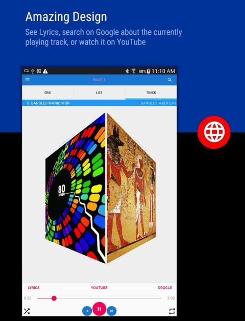 , Material Design, awesome UI. Great sound quality with Equalizer, Crossfade.