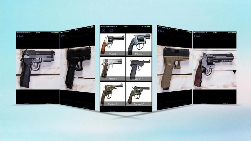 इस एप्लिकेशन के चित्र खंड में कई बन्दूक pics रहे हैं। कोशिश करो और आरा पहेली को हल करने के लिए इन pics के सभी विवरण याद।