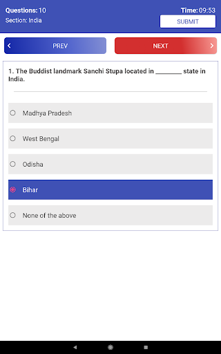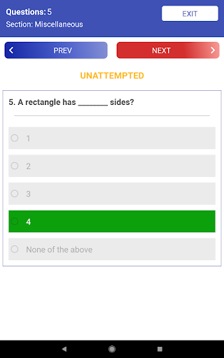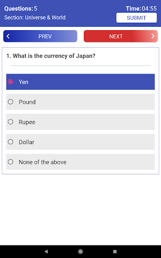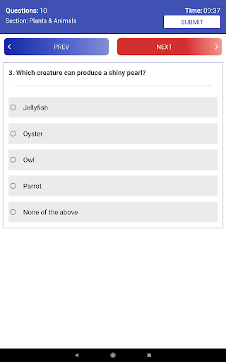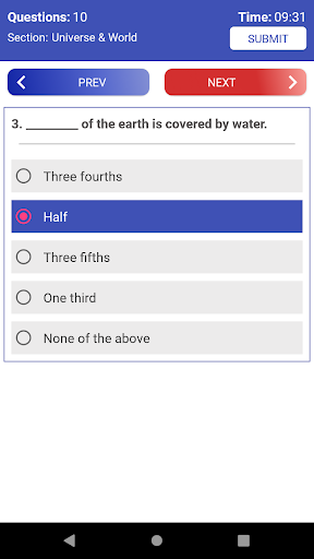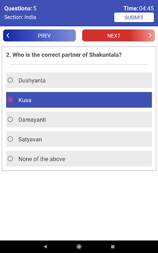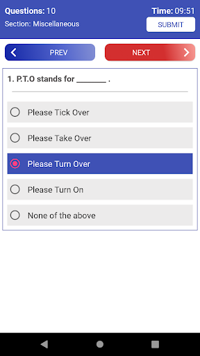Answer Quiz questions till the completion of the time limit set or Click on Submit button if you finished ahead of time.