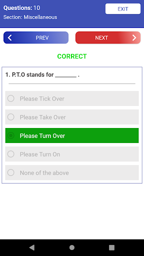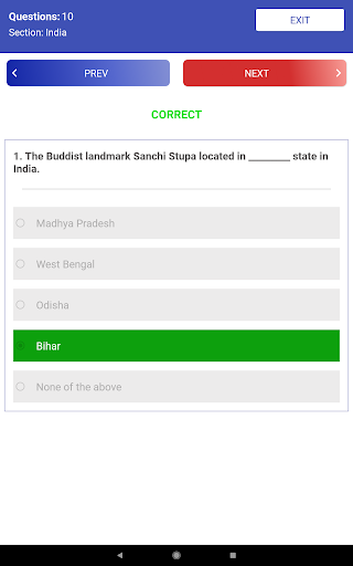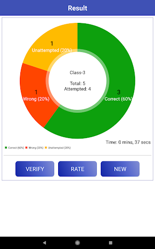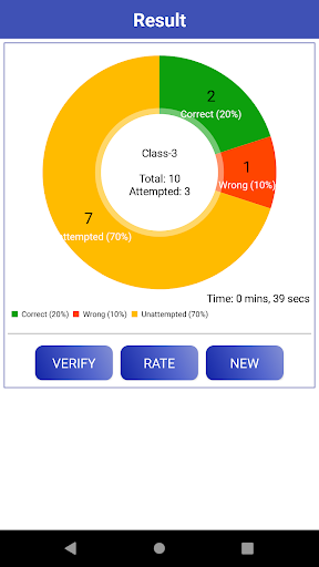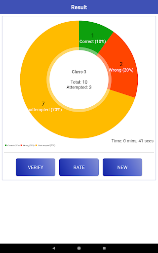 - Result in a Detailed Pie Chart with correct/wrong/unattempted number of questions and its percentages along with time taken to complete the test.
