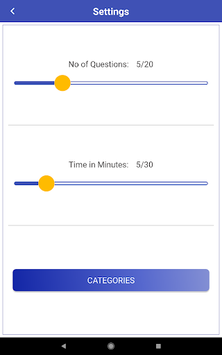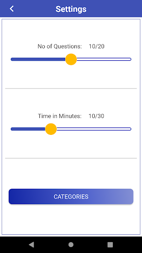 - You have option to choose number of questions and time in minutes in Settings panel.