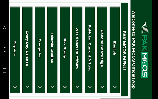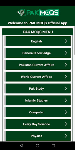 Pakmcqs की मुख्य श्रेणियां प्रश्नोत्तरी ऐप: