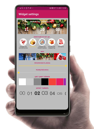 तो ग्रीन को क्रिसमस चुरा नहीं गया - हमारे नए साल के पुराने एप्लिकेशन, विजेट को स्थापित करें और यह सफल नहीं होगा, क्योंकि हर मिनट आपको पता चलेगा कि क्रिसमस तक कितने दिन, घंटे और मिनट बचे हैं और न केवल। आप यह भी जान सकते हैं कि नए साल, रूढ़िवादी क्रिसमस, चीनी नव वर्ष से पहले कितना समय बचा है, इन घटनाओं को एप्लिकेशन सेटिंग्स में सेटिंग। आप अपने स्मार्टफोन की स्क्रीन पर ट्रैक रखने के लिए अपने ईवेंट की तारीख भी सेट कर सकते हैं। सेटिंग्स में, आप क्रिसमस टाइमर विजेट, इसकी पारदर्शिता और धुंध की पृष्ठभूमि बदल सकते हैं। टाइमर के फ़ॉन्ट और रंग को भी बदलें। क्रिसमस पहले से ही जल्द ही grincha इसे विजेट स्थापित करने से चुरा नहीं देता है। हैप्पी मैरी क्रिसमस और नया साल मुबारक हो।