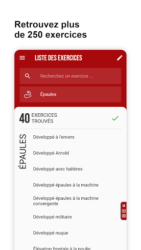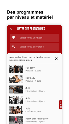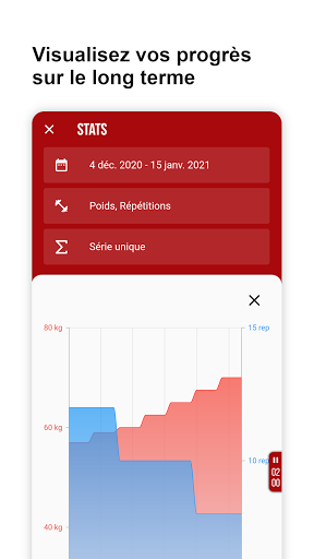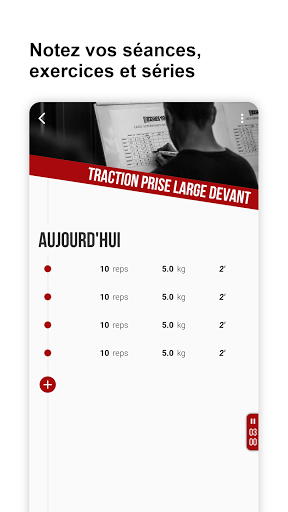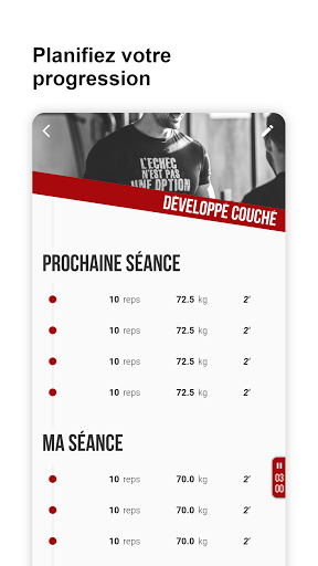 वहां से, आपके शरीर सौष्ठव अनुभव के अनुसार, आवेदन आपको सत्रों के दौरान आपके द्वारा सब कुछ नोट करने के लिए मजबूर करेगा। यही कहना है कि आपकी श्रृंखला, पुनरावृत्ति, आपका पुनर्प्राप्ति समय (एक स्टॉपवॉच एकीकृत है), बल्कि प्रत्येक अभ्यास (आरपीई), अपनी प्रगति को प्रोग्राम करने के लिए एक प्राथमिक कारक भी महसूस करने में कठिनाई का कहना है।