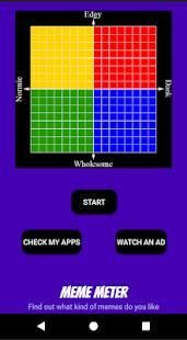 इस एप्लिकेशन को आप पता लगाने के लिए अगर आप नम, normie, नुकीला या पौष्टिक memes तरह मदद करता है। यह प्रश्नों का एक सेट में होते हैं और हर सवाल का कुछ जवाब है कि आप चुन सकते हैं है।