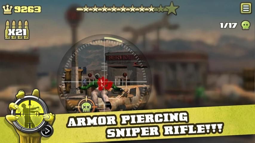 अपने ज़ोंबी, खुशी की हत्या सहित के लिए हथियारों की एक किस्म का प्रयोग करें: कवच स्नाइपर राइफल, पंप कार्रवाई शॉटगन, जल्दी से पुनः लोड राइफल और भयानक आतिशबाजी बंदूक भेदी।