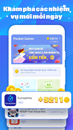 पॉकेट गेनर गेम खेलकर और सर्वेक्षण करके एक सिक्का खोज ऐप है। जू रेक और वॉलेट इलेक्ट्रॉनिक बैंक बदल सकता है।