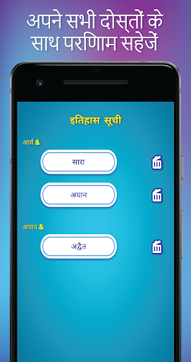 बस अपना नाम और एक मित्र का नाम दर्ज करें और फिर उस व्यक्ति के साथ अपनी दोस्ती के बारे में अलग-अलग क्विज़ पूरा करें। आपके द्वारा प्रत्येक क्विज़ में 10 प्रश्नों को पूरा करने के बाद, हमारा अद्वितीय एल्गोरिथ्म आपके उत्तरों का आकलन करेगा और आपको यह बताएगा कि दोस्ती कितनी मजबूत है, तब आप प्रत्येक मित्र के साथ अपना परिणाम सहेज सकते हैं और यहां तक कि उनके साथ अपना शीर्ष परिणाम भी साझा कर सकते हैं!