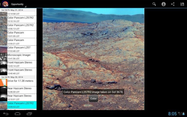 मंगल ग्रह छवियां तुम आत्मा, अवसर और जिज्ञासा मंगल रोवर्स से नवीनतम छवियों को बचाता है. कड़ी चोट, स्क्रॉल, और मंगल ग्रह से नवीनतम डाउनलिंक के माध्यम से खोज. उसे ड्राइव नक्शे में अवसर की गतिविधियों की जाँच करें और लाल नीले चश्मे के साथ 3 डी में स्टीरियो छवियों को देखने. अपने परिवार और दोस्तों के लिए दिलचस्प छवियों भेजें!