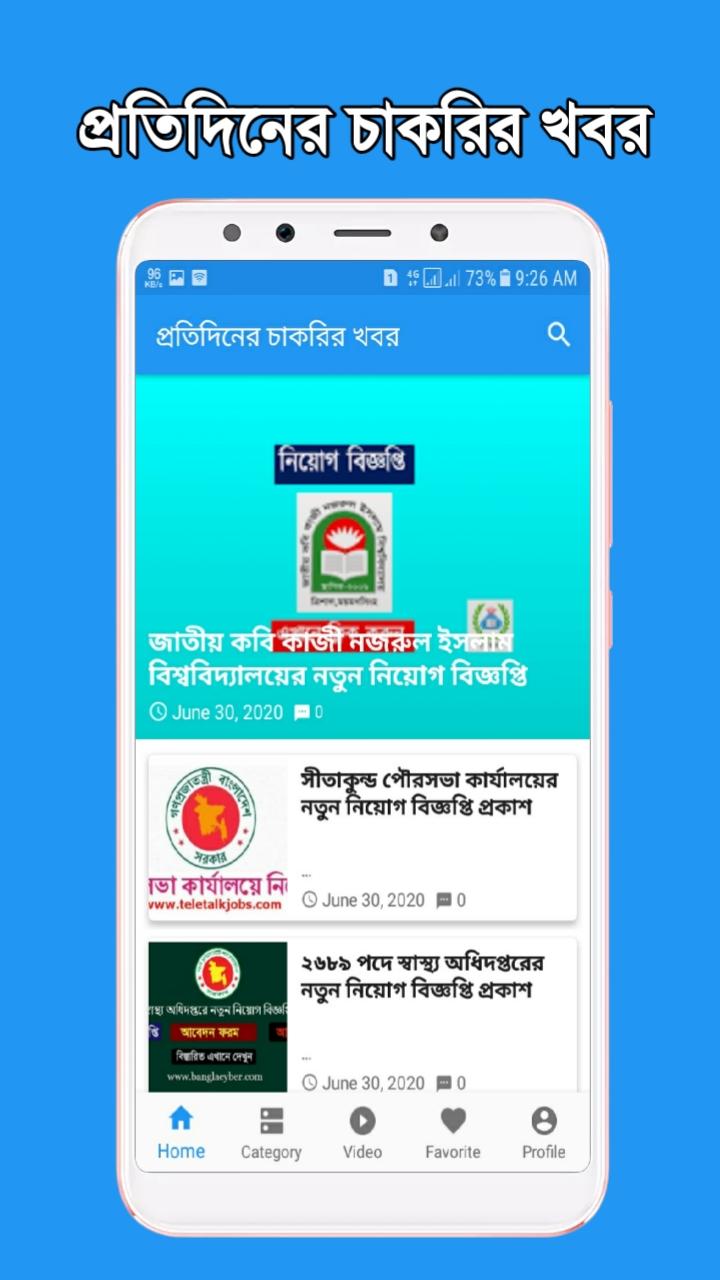 ১. প্রতিনিয়ত আপডেট চাকরির খবর পাবেন এই এপটিতে। বিভিন্ন বিশ্বস্ত পত্র-পত্রিকা ও উৎস এবিং অনলাইন থেকে আমরা এগুলো চাকরির খবর সংগ্রহ করে আপনাদেরকে উপস্থাপন করি।