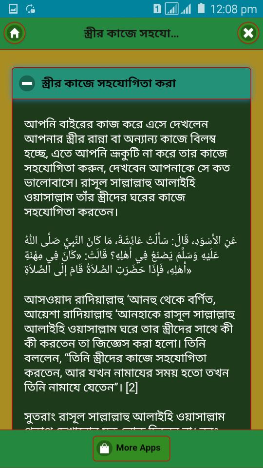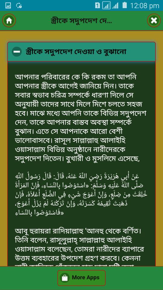 এই অ্যাপসটিতে রয়েছে একজন আদর্শ স্বামী হওয়ার গুনাবলী । এই অ্যাপসটি পাঠের মাধ্যমে যে কোন পাঠক একজন আদর্শ স্বামী হওয়ার নিয়মগুলো জানতে পারবে ।স্বামী-স্ত্রী একে অন্যের অর্ধাঙ্গ। মানুষ যেমন তার অর্ধেক অঙ্গ নিয়ে পূর্ণ জীবনের সাধ পেতে পারে না, তেমনি একজন লোক একজন ভাল স্বামী বা স্ত্রী ছাড়াও পূর্ণাঙ্গ মানুষ হতে পারে না। একে অপরকে যতটা বুঝতে পারবে তাদের জীবন ততটাই সুন্দর ও মধুময় হবে। একজন পুরুষের জীবনে যেমন অন্যতম আশা থাকে ভালো একজন স্ত্রী পাওয়া, তেমনিভাবে একজন মেয়েরও জীবনে সবচেয়ে বড় চাওয়া পাওয়া হলো ভালো একজন স্বামী ভাগ্যে জুটা। একমাত্র একজন আদর্শ স্বামীই পারে তার স্ত্রীর জীবনকে পূর্ণ করে দিতে।