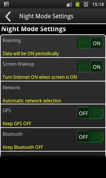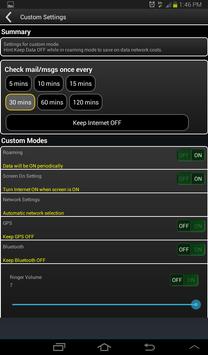Manage sleep mode settings efficiently. Save WIFI and mobile data usage when your phone is in sleep mode and still get your messages and email at frequent intervals - Fully configurable.