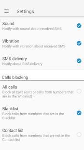 You can block SMS OR incoming calls easily with block list app, In the settings you have full control about notifications (on/off) vibration and much more! We keep it smart&simple for you!