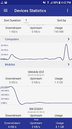 Router Speed Meter provides live speed and textual as well as graphical statistics of the device which are currently sharing the same wifi and have this app. It also provides the speed of all the PC's in the same wifi.