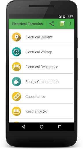 आप इस ऐप में निम्नलिखित विद्युत सूत्र पा सकते हैं: