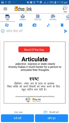 स्कूगलिंक सामाजिक : स्कूल शिक्षा के लिए समर्पित सामाजिक मंच, देश में पहली बार एक ही मंच पर शिक्षा इको-सिस्टम के सभी हितधारकों को एक साथ लाना - माता-पिता, शिक्षक, स्कूल, शिक्षा अधिकारी, छात्र और पूर्व छात्र। मल्टी-चैनल डिस्कशन फ़ोरम से जुड़े, दिलचस्प "फैक्ट्स ऑफ़ द डे" सीखें और अपने दिमाग को हमारे "पहेली ऑफ़ द डे" से छेड़ें।