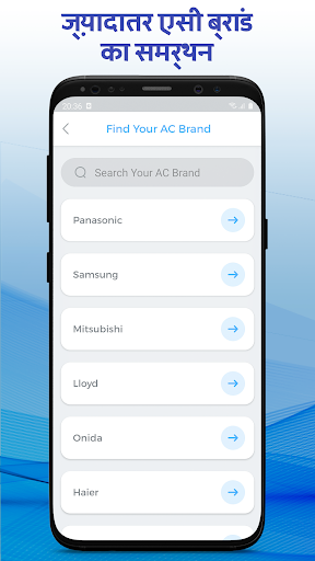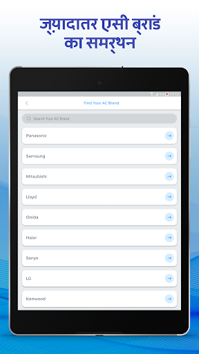 • उपलब्ध एसी की सूची में से अपने एसी का ब्रांड चुनें और उससे कनेक्ट करें।