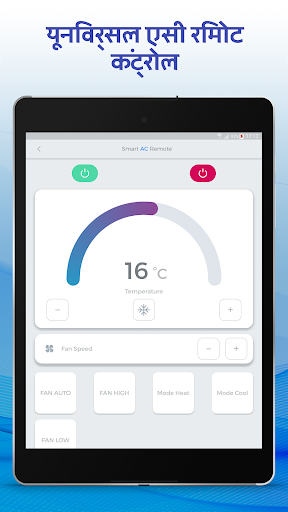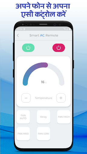 इसी वक़्त एंड्रॉइड पर मौजूद हमारा एप्लीकेशन डाउनलोड करें और उसके बाद आप एयर कंडीशनर (एसी) के सामान्य रिमोट कंट्रोलर को कहीं दूर रख सकते हैं, क्योंकि हमारा एप्लीकेशन अपना एयर कंडीशनर कंट्रोल का करने का नया तरीका है। हमारा ऐप प्रयोग करें और अपने एयर कंडीशनर के लिए क्लासिक रिमोट कंट्रोल को भूल जाइये।