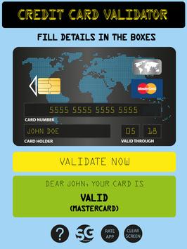 Credit Card Validator is a simple app that lets you validate a card number based on Luhn Algorithm. Privacy: This app does not store or share any entered information.