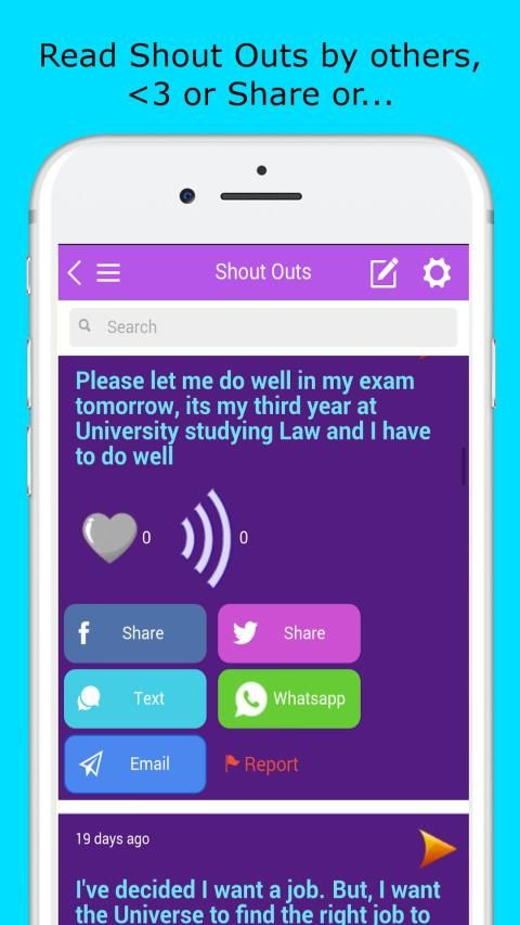 Send your messages to the Universe and help others send their messages too! It's all about the message on here. No names - or even usernames, just content and sentiments.