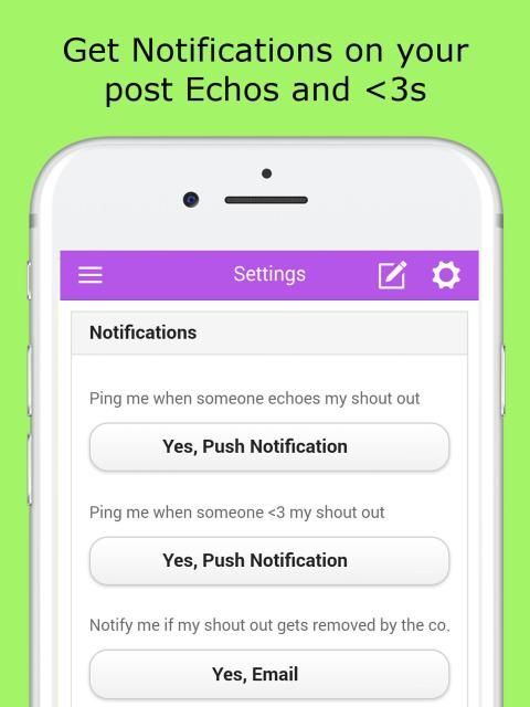 पाठ, या एक तस्वीर, या वीडियो के साथ ब्रह्मांड के लिए अपने संदेश भेजें। आप दिल आइकन पर क्लिक करके संदेश के लिए अपना प्यार भेज सकते हैं। आप इको पर क्लिक करके ब्रह्मांड के लिए संदेशों गूंज कर सकते हैं! आइकन। तुम भी गूंज के लिए एक टिप्पणी संलग्न कर सकते हैं।