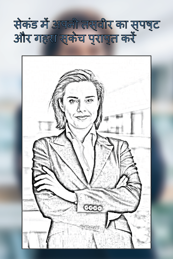 "स्केच फोटो आर्ट: छवि संपादक आपकी उंगलियों पर किसी भी प्रकार की फोटो या छवि को स्केच ड्राइंग कला में परिवर्तित कर सकता है। यह कुछ सरल चरणों का पालन करके किया जा सकता है। इस टूल की पहली स्क्रीन अपलोड छवि बटन दिखाती है। इसे स्केच में बदलने के लिए डिवाइस से किसी भी छवि का चयन करें।