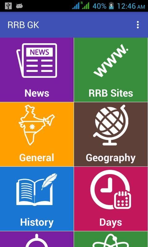 इस एप्लिकेशन को आप विभिन्न विषयों है कि के लिए तैयार करने के लिए बहुत जरूरी है में quizes प्रस्तुत आरआरबी एनटीपीसी (गैर तकनीकी) एवं तकनीकी पदों नवरोहण 18000 पदों एनटीपीसी ग्रेजुएट की तरह परीक्षा रेलवे