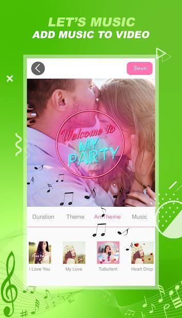 {2} Select theme, effect animator, music you love