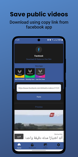 फेसबुक के लिए वीडियो और छवि डाउनलोडर ऐप आपके गैलरी में वीडियो डाउनलोड करने के लिए एक छोटा और साफ टूल है।