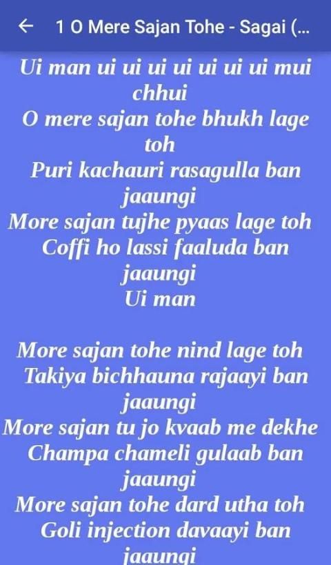 अरे, यह क्या होता है, हर बार हम जब तक हम गाड़ी चला रहे हैं रेडियो या मोबाइल पर एक गाना सुनने के लिए। और आप के साथ गाते हैं जब तक एक दोस्त तुम पर हंसते हुए कहते हैं और कहते हैं, उन शब्दों को नहीं कर रहे हैं! और अगर आप हं, क्या, वास्तव में जाना है? अपनी दुनिया के रूप में आप के चारों ओर टूटता है। तो, हम आप के लिए कुछ लोकप्रिय बॉलीवुड गाने के बोल को उपलब्ध कराने के लिए जो एक गाना गाने के लिए प्यार करता है। और भी कई लोगों को बॉलीवुड के गीत के रूप में WhatsApp स्थिति के रूप में इसे बनाने के लिए चाहते हैं। इस प्रकार के लिए ... तुम सही जगह में हैं। मुझे आशा है कि आप मेरी पोस्ट पसंद करेंगे।