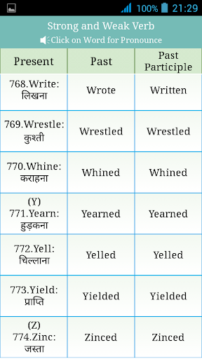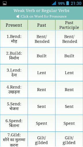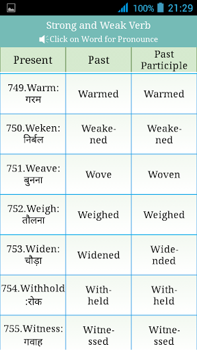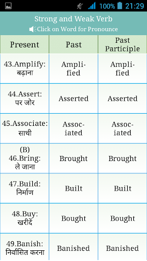 अनियमित, नियमित क्रिया या हिंदी अर्थ के साथ क्रिया का संयुग्मन।आप यहां 900 से अधिक क्रिया प्राप्त करते हैं