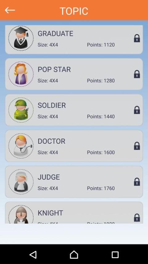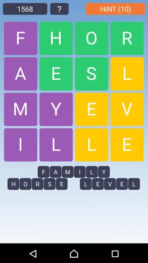 • सभी शब्दों की सूची में स्तर को पूरा करने के लिए, कई अंग्रेजी शब्दों का पता लगाएं