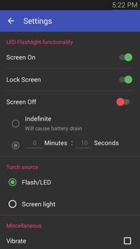 The flashlight has also the settings option where you can have access to a lot of features. You can also light up with the screen of your cellphone, in case you don't have LED flashlight.