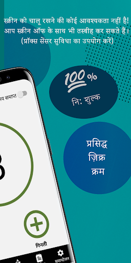 • स्क्रीन को चालू रखने की कोई आवश्यकता नहीं है: आप ज़िक्र को स्क्रीन बंद करके भी गिन सकते हैं! 'हैंड स्वाइप काउंट' (निकटता सेंसर) सुविधा का उपयोग करें।