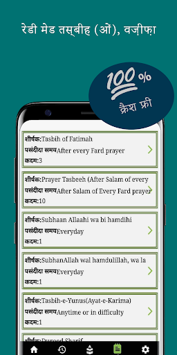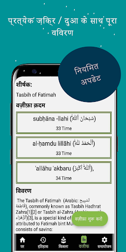 (تسبیحةالزھراء / تسبیح اطمہ الزھرا)। एक वज़ीफ़ा (तस्बीह क्रम) में प्रत्येक चरण (तस्बीह) के लिए, यह पाठ को पढ़ने के लिए दिखाता है और इस प्रकार जटिल तस्बीह अनुक्रमों को सरल बनाने के लिए दोहराव दिखाता है।