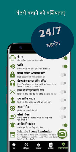 • आप स्क्रीन को बंद रखने और बैटरी बचाने के लिए ईयरफोन या वॉल्यूम बटन या प्रॉक्सिमिटी सेंसर के साथ तस्बीह की गिनती बढ़ाना/घटाना चुन सकते हैं।