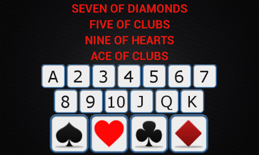 जब दर्शक में प्रवेश होता है इंपीफिबल कार्ड ऐप में छोड़े गए 4 कार्ड एड, फोन तब एक प्लेइंग कार्ड के पीछे प्रदर्शित होगा।