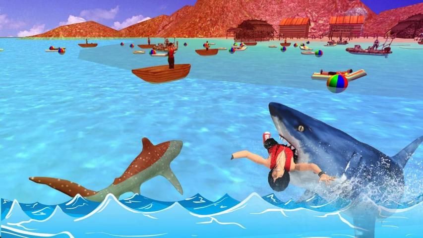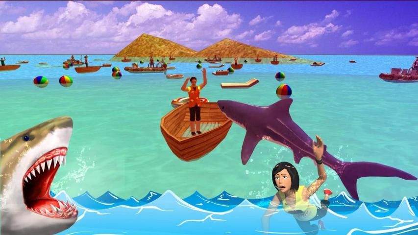 The sharks are ready to attack. It’s never safe to enter the water. Be the deadly shark and attack humans on the beach.
