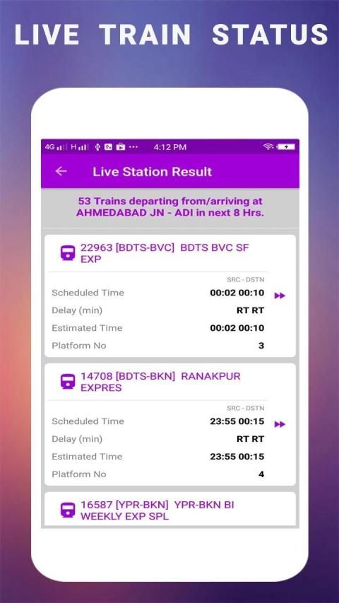 ## लाइव स्टेशन की स्थिति - चयनित स्टेशन से अगले 4 घंटे में आने और जाने वाली ट्रेनों की जानकारी:}