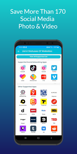 आप इंटरनेट से 100% मुफ्त में ऑडियो/वीडियो डाउनलोड कर सकते हैं और कुछ ही क्लिक में बहुत आसानी से। यह आपके Android डिवाइस के लिए एक हाई-स्पीड डाउनलोडर है। यह वीडियो डाउनलोडर ऐप आपको केवल एक क्लिक के साथ एचडी में डाउनलोड करने और रिकॉर्ड करने में मदद कर सकता है। बेहद तेज़, सुरक्षित और 100% मुफ़्त! सभी वीडियो प्रारूप और विभिन्न संकल्प समर्थित हैं।