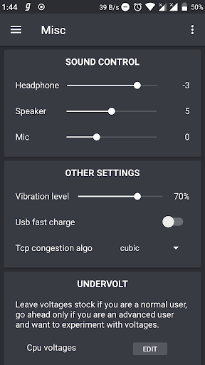 - विविध अनुभाग ध्वनि लाभ, कंपन, टीसीपी इत्यादि की तरह कुछ अन्य tweaking देता है