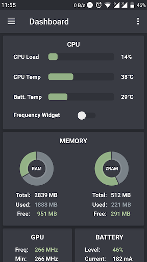 - चलने पर आवृत्तियों और तापमान की जांच के लिए फ़्लोटिंग ओवरले फ्रीक्वेंसी विजेट उपलब्ध है।