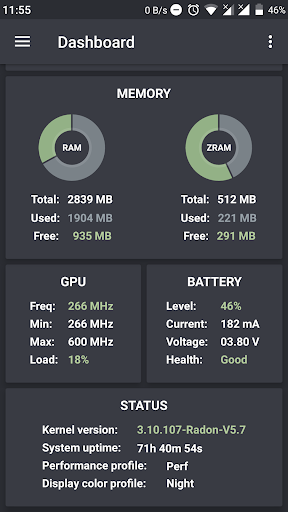 - डैशबोर्ड अद्वितीय है और लोड, temps, वर्तमान, स्मृति जैसे बहुत से उपयोगी जानकारी दिखाता है उपयोग आदि