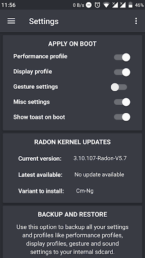 - बैकअप और पुनर्स्थापित विकल्प उपलब्ध हैं क्योंकि कुछ उपयोगकर्ता अक्सर रोम को बदलना पसंद करते हैं।