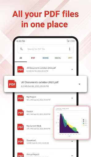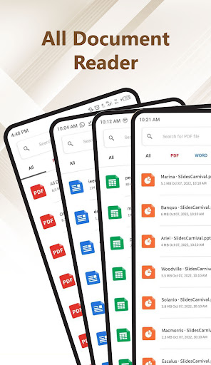 हमारा मुफ्त पीडीएफ रीडर ऐप एक ऑल-इन-वन ऑफिस ऐप है जो इंटरनेट कनेक्शन की आवश्यकता के बिना पीडीएफ फाइलों, वर्ड डॉक्यूमेंट्स, एक्सेल स्प्रेडशीट और पावरपॉइंट प्रेजेंटेशन तक सीधी पहुंच प्रदान करता है।इस असाधारण पीडीएफ व्यूअर ऐप को इंस्टॉल करें और एक सहज पढ़ने के अनुभव में लिप्त करें।हमारे मुफ्त पीडीएफ बुक रीडर और डॉकएक्स रीडर ऐप के साथ सहजता से पीडीएफ फ़ाइलों को पढ़ने का आनंद लें।