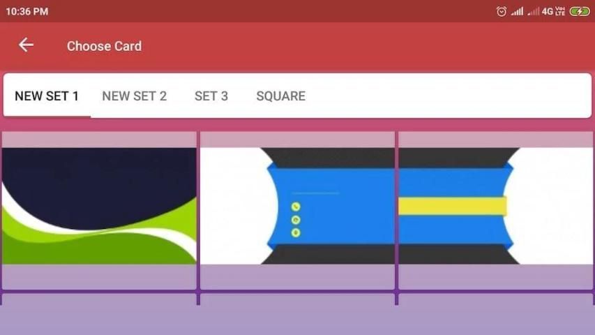 - दिए गए टेम्प्लेट में से कोई भी कार्ड चुनें, बैकग्राउंड जैसा कलर या गैलरी से अपनी पसंद की इमेज चुनें।