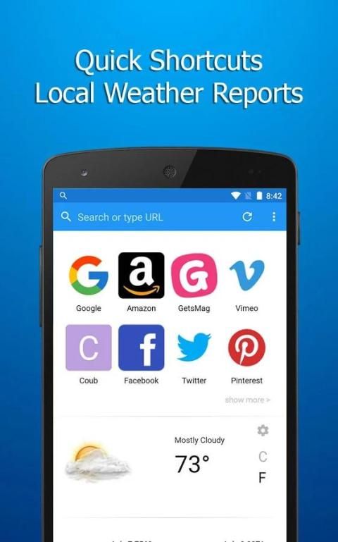 - सबसे अधिक इस्तेमाल किया वेबसाइटों के लिए त्वरित शॉर्टकट: गूगल, अमेज़न, फेसबुक, ट्विटर, आदि
