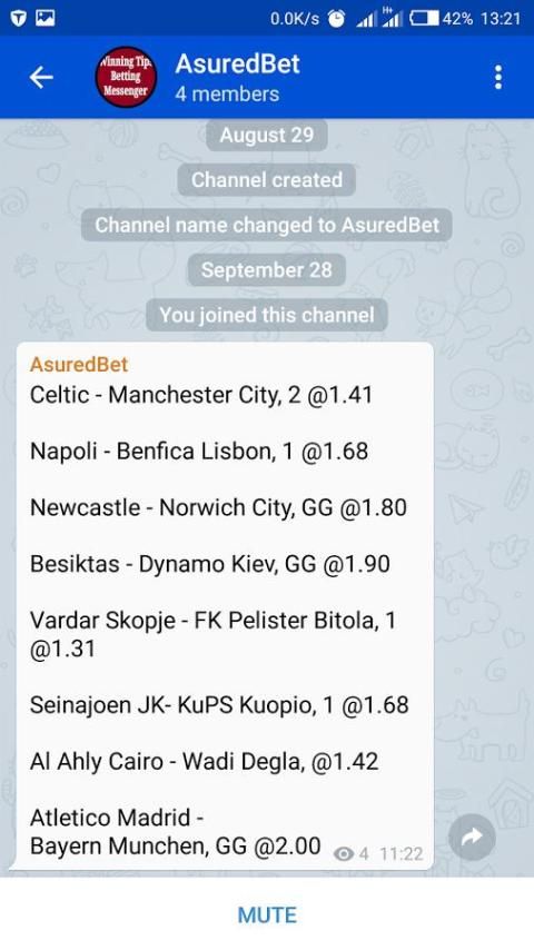 हम दैनिक आधार पर इस दूत करने के लिए दैनिक शर्त युक्तियाँ भेजें। तुम सुझाव तुरन्त प्राप्त होगा। हमारे चैनल AsuredBet है।