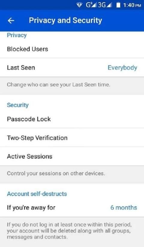 • · गुप्त चैट विकल्प।